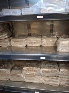 Importé deux fois par semaine par cargo depuis Addis Abeba, les pains injera à base de farine de teff sont très demandés par les clients.