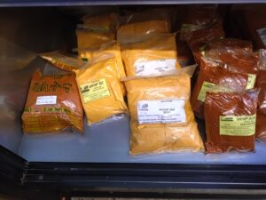 Farine de teff et épices en poudre, berbere et mitmita. የጤፍ ዱቄት እና ዱቄት ቅመማ ቅመሞች, በርበሬ እና ሚሚታ.